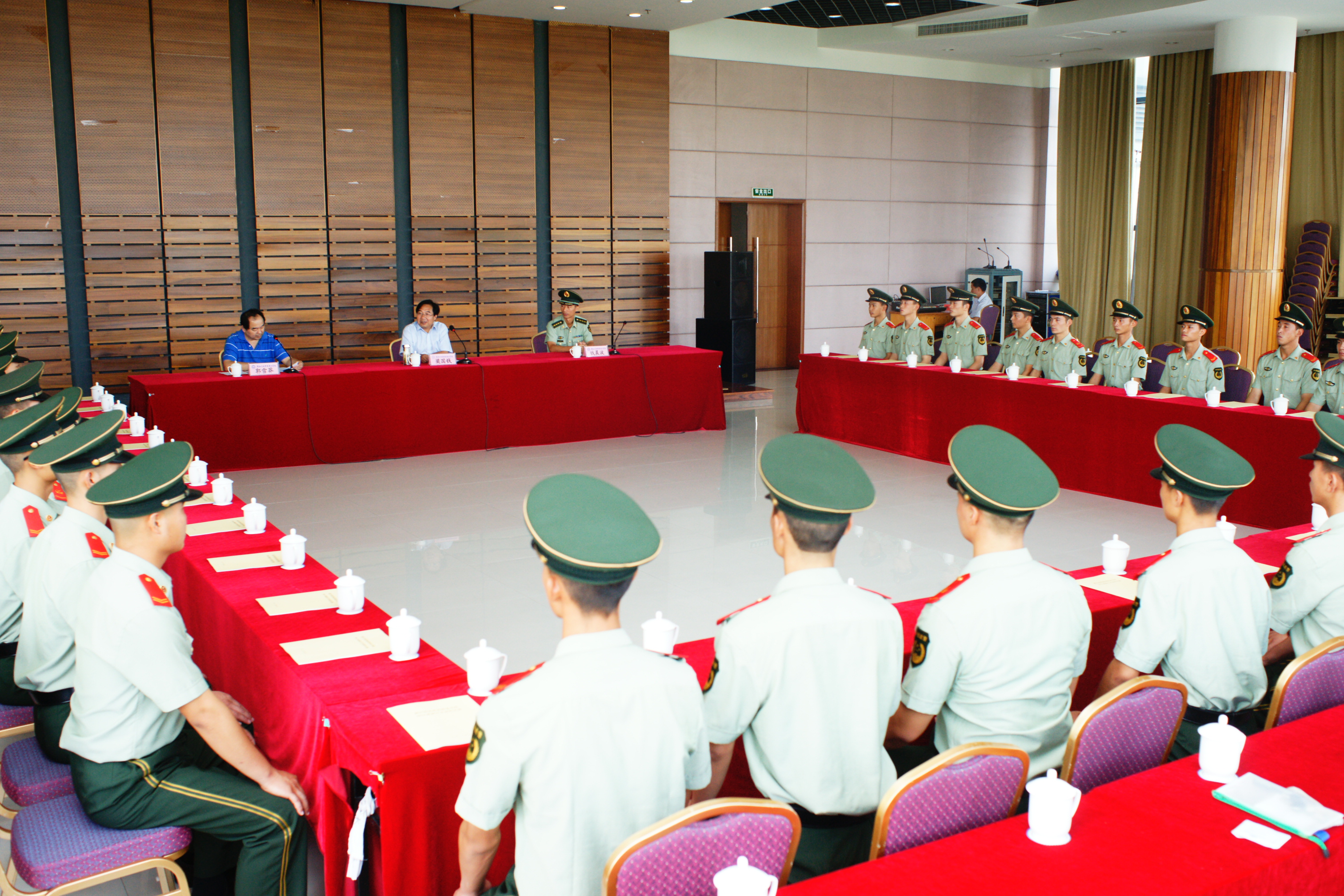 典礼结束后,还举行了军训教官见面会,来自此次军训承训部队——杭州武警士官学校的教官们和各系、系党总支负责人参加了会议。副院长郭雪莽主持见面会,院长梁国钱对教官们的到来表示欢迎,并希望通过为期半个月的军训,能使新生们初步适应大学生活,具备独立生活的能力,去掉身上的骄娇二气。承训部队首长也表示,将配合学院,以认真负责的态度圆满完成此次军训任务。