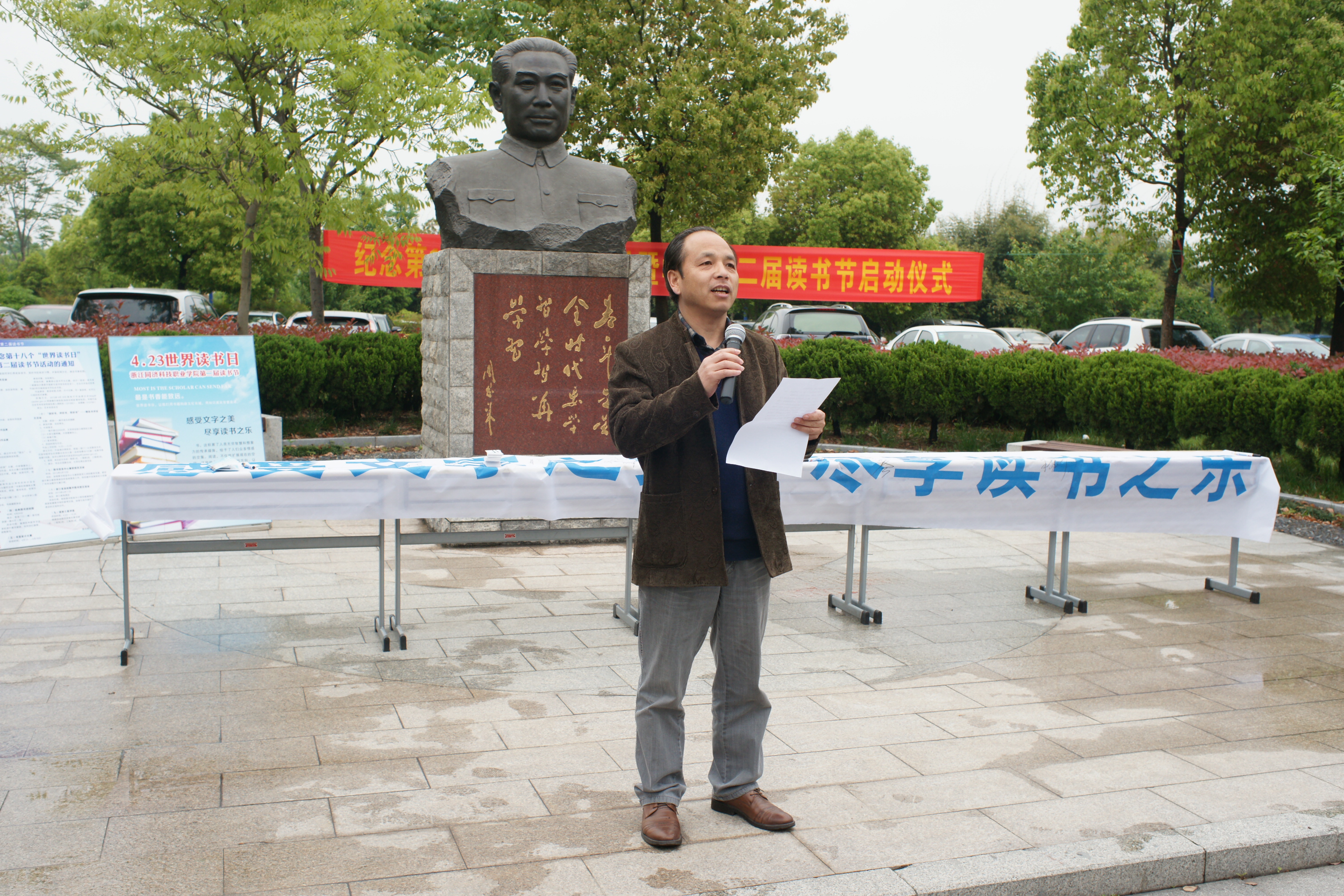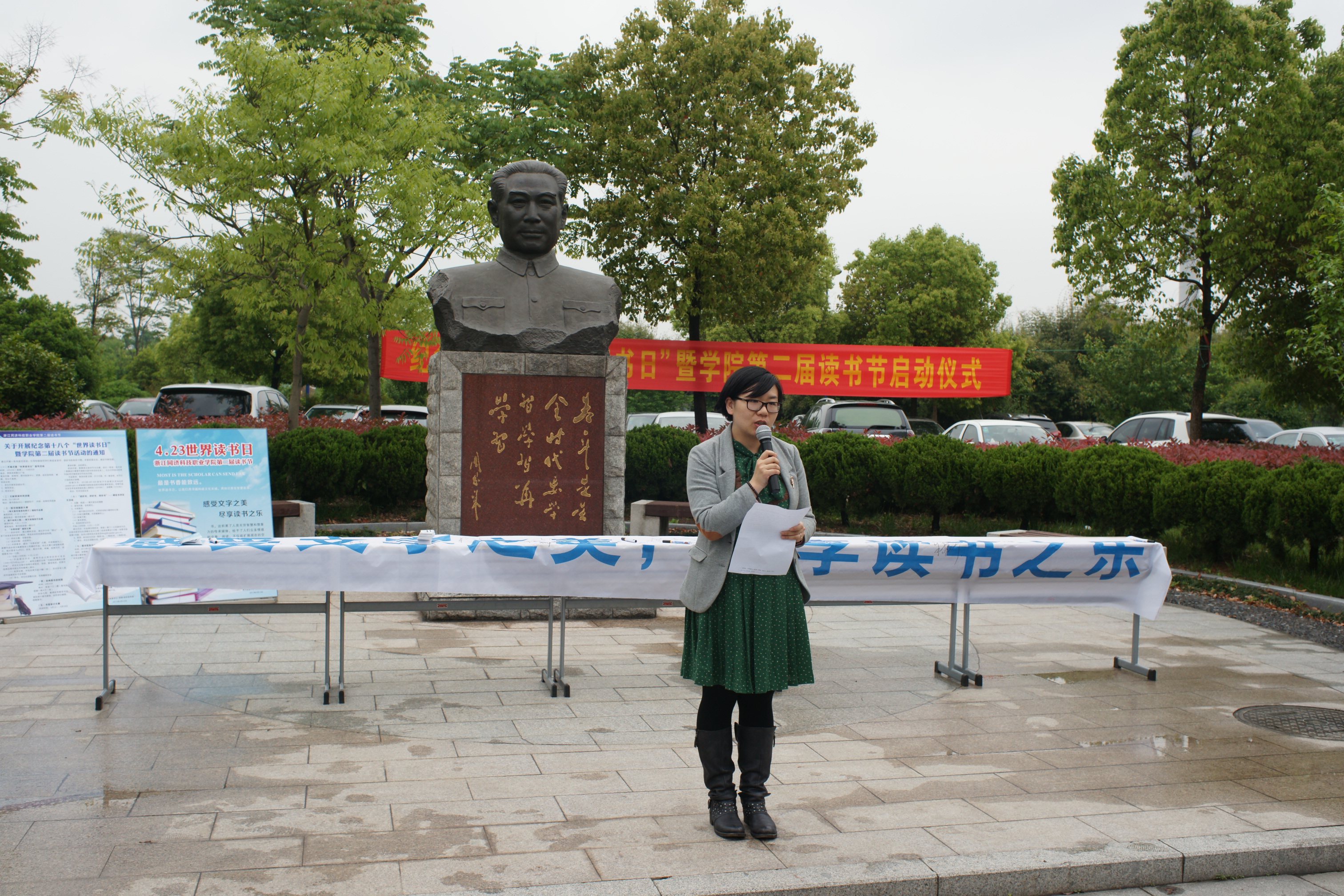 4月23日是第18个“世界读书日”,以“感受文字之美、尽享读书之乐”为主题的学院第二届读书节暨纪念第18个世界读书日活动启动仪式于当天中午在周恩来铜像小广场隆重举行。