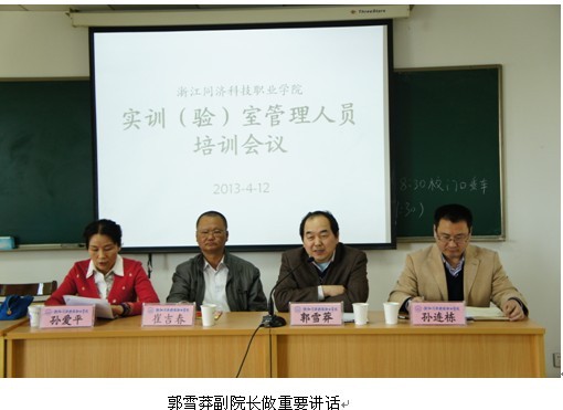 各系(部)分管实训工作负责人、实训中心全体人员参加了培训会议仪式。郭雪莽副院长到会并做了重要讲话。他提出了四点要求:一要高度重视实训(验)室的管理工作,以高度的责任心和饱满的热情投入到工作中;二是务必要加强安全管理,确保实现零事故目标;三是要努力提高设备维修、维护的水平,保证设备的正常使用;四是遇到问题要多动脑、多思考,充分发挥主观能动性,做好本职工作。