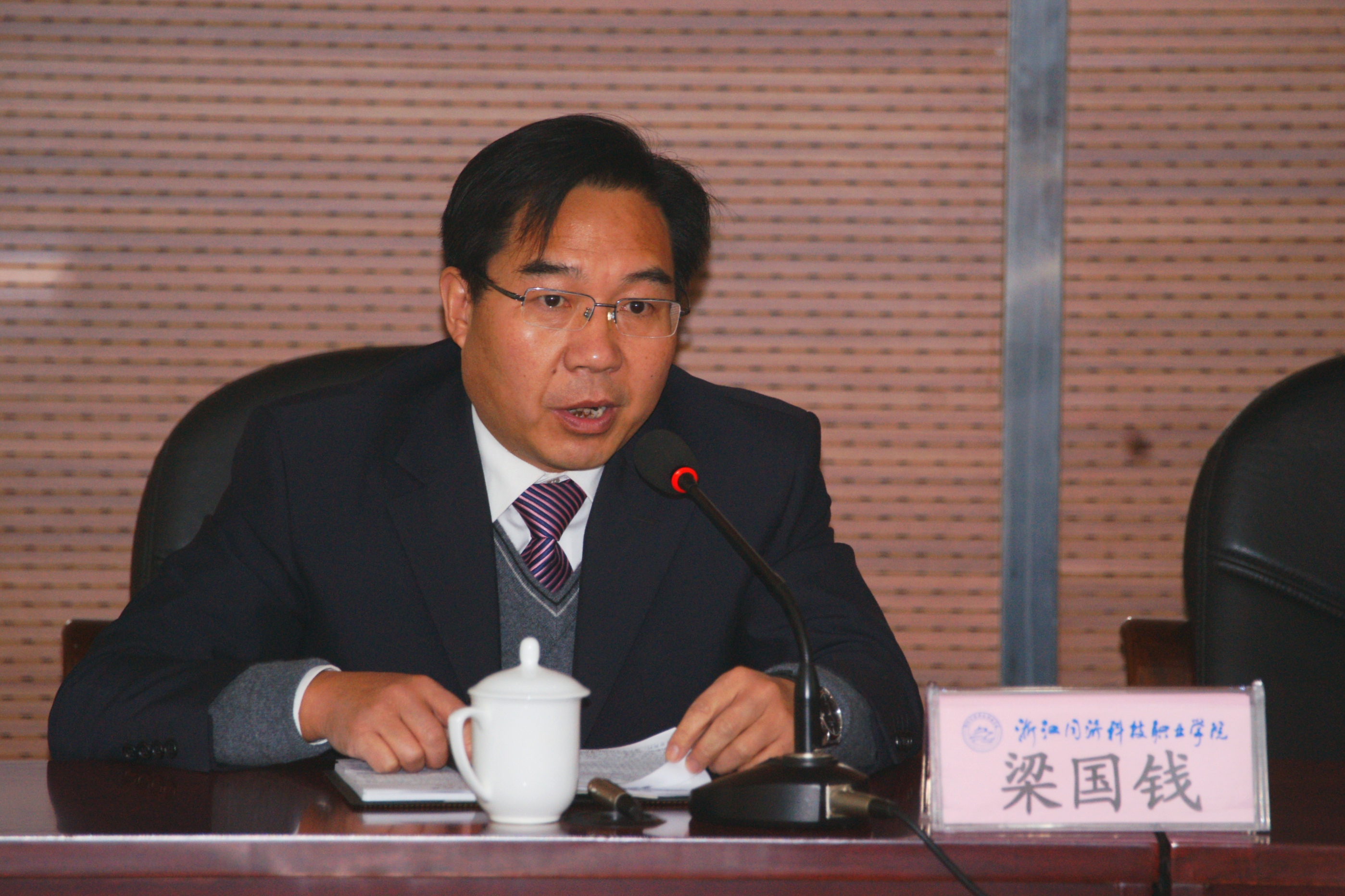 梁国钱院长发言,他表示,一定认真学习高等教育、职业技术教育的发展规律,贯彻科学发展观,努力提高自己为师生服务的能力和水平,恪尽职守,服务学院建设与发展,紧紧围绕着学以致用的目标,加强学科建设,强化课程教育,提升内涵发展,把学院建设成为一座具有鲜明特色,渐具影响力的职业技术学院。