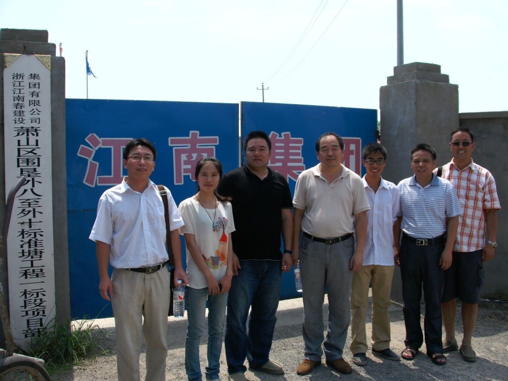 8月16日,学院副院长郭雪莽带领水利系副主任高永胜、系党总支副书记胡海清、系主任助理刘进宝等,赴浙江江南春建设集团有限公司萧山区围垦外八至十工段标准塘Ⅰ标段建设工地,看望暑期参加企业锻炼的水利系青年教师王亚芹和郑荣伟。