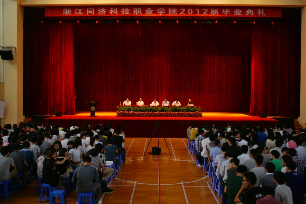 6月6日上午,在学院文体中心举行了2012届毕业生毕业典礼。院领导叶舟、郑贞宝、沈燕、金连根、郭雪莽、刘志华出席了典礼,典礼由副院长郑贞宝主持,院长叶舟作重要讲话。全体1505名毕业生、各系领导、毕业班班主任、辅导员和相关部门负责人出席了典礼。