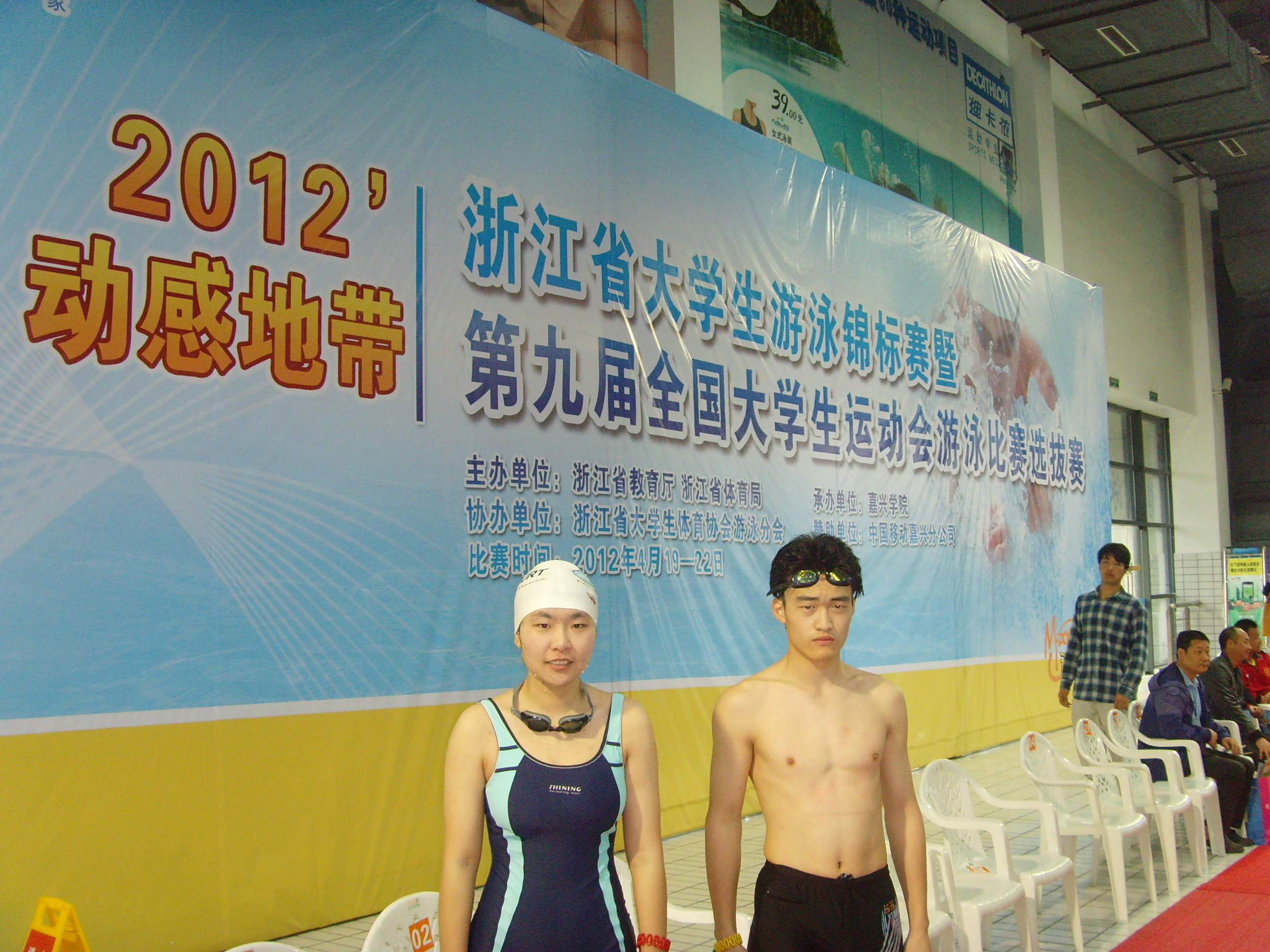 由浙江省教育厅、浙江省体育局主办,嘉兴学院承办,浙江省大体协游泳分会协办,中国移动嘉兴分公司赞助的2012年“动感地带”浙江省大学生游泳锦标赛暨第九届全国大学生运动会游泳比赛选拔赛于4月19-22日在嘉兴举行。共有来自全省高校35支代表队参赛。