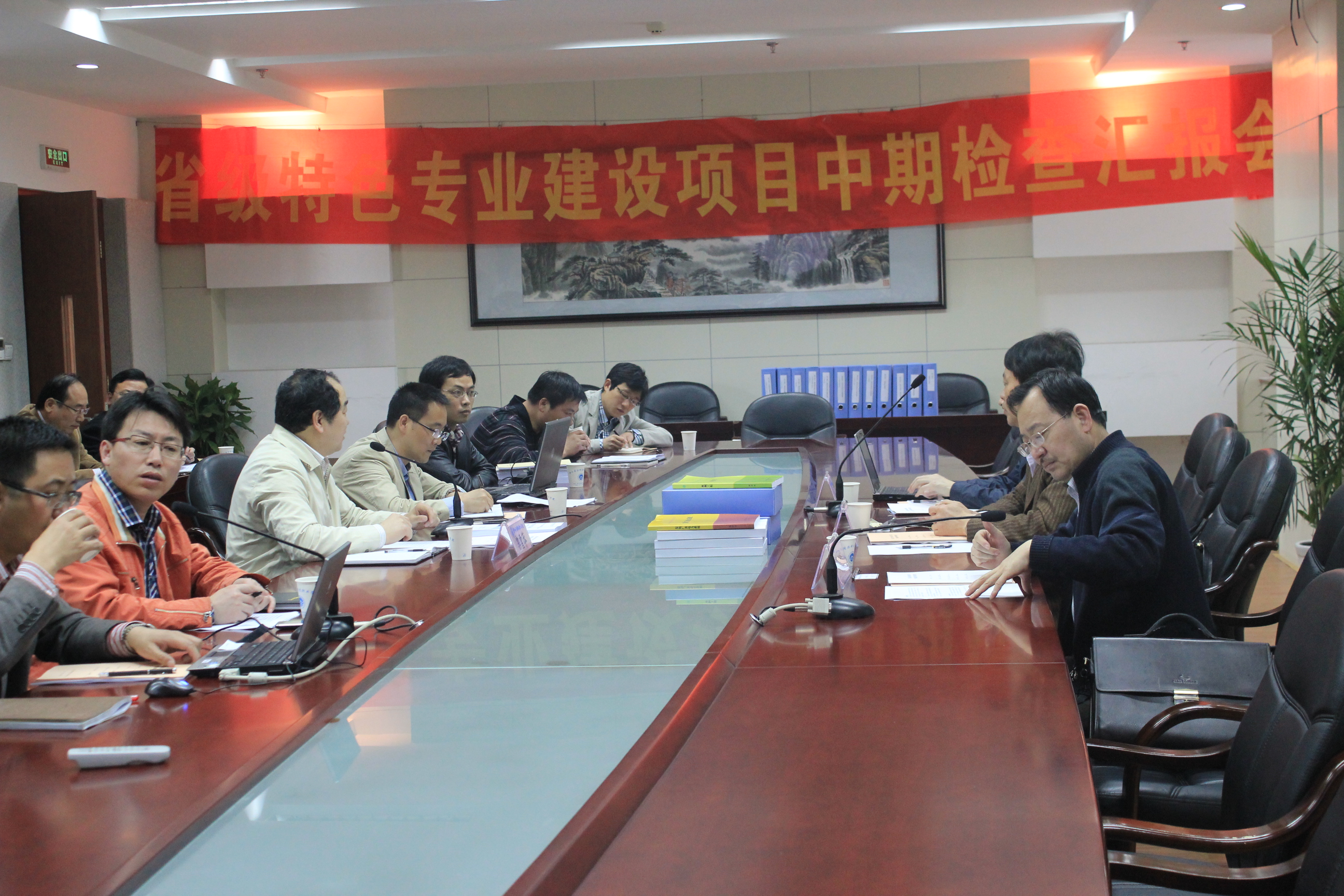 专业带头人刘进宝、张仁贡分别汇报了《水利工程》、《发电厂及电力系统》省级特色专业建设项目进展情况、取得的成果、经费使用情况、下一步的工作安排、存在的主要问题等。三位专家认真听取了两位专业带头人的汇报,查阅了相关的佐证材料,肯定了专业建设项目所取得的成果,指出了表格填写、资料整理中存在的问题,建议进一步深化工学结合人才培养模式改革,以省级特色专业建设项目为载体,打造高水平教学团队。