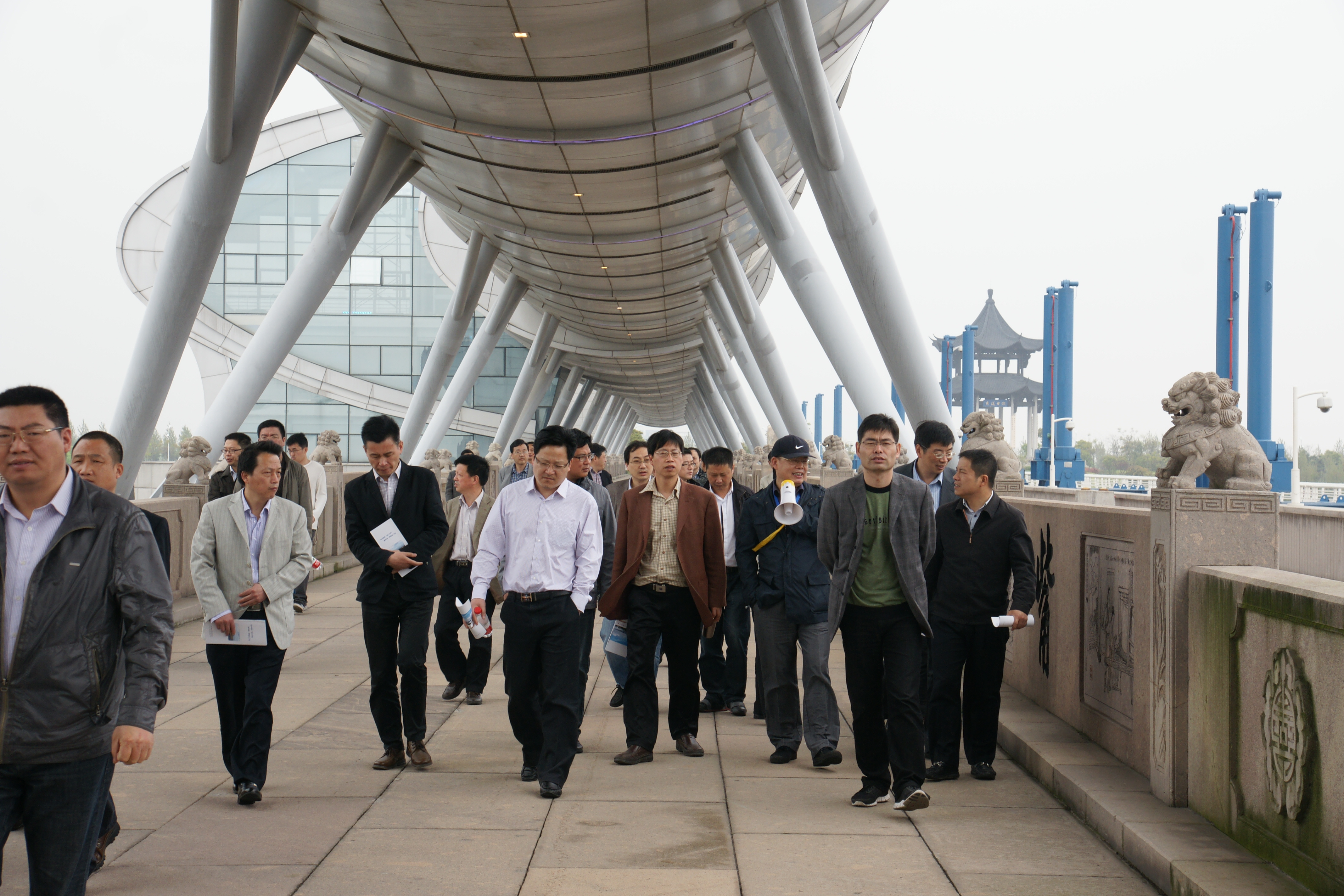 下午,学员们马不停蹄地来到浙东引水工程枢纽——绍兴市曹娥江大闸。曹娥江大闸管理局副局长吕益江带领学员们参观了大坝、调度监控室等,吕副局长介绍,曹娥江大闸的建成,大大提高了两岸防潮、防洪、排涝能力和水资源的利用率,改善了航运条件和两岸平原河网水环境,而且曹娥江大闸还是现今中国第一河口大闸,是我省一流的精品水利工程之一。这些成就让学员们叹为观止。