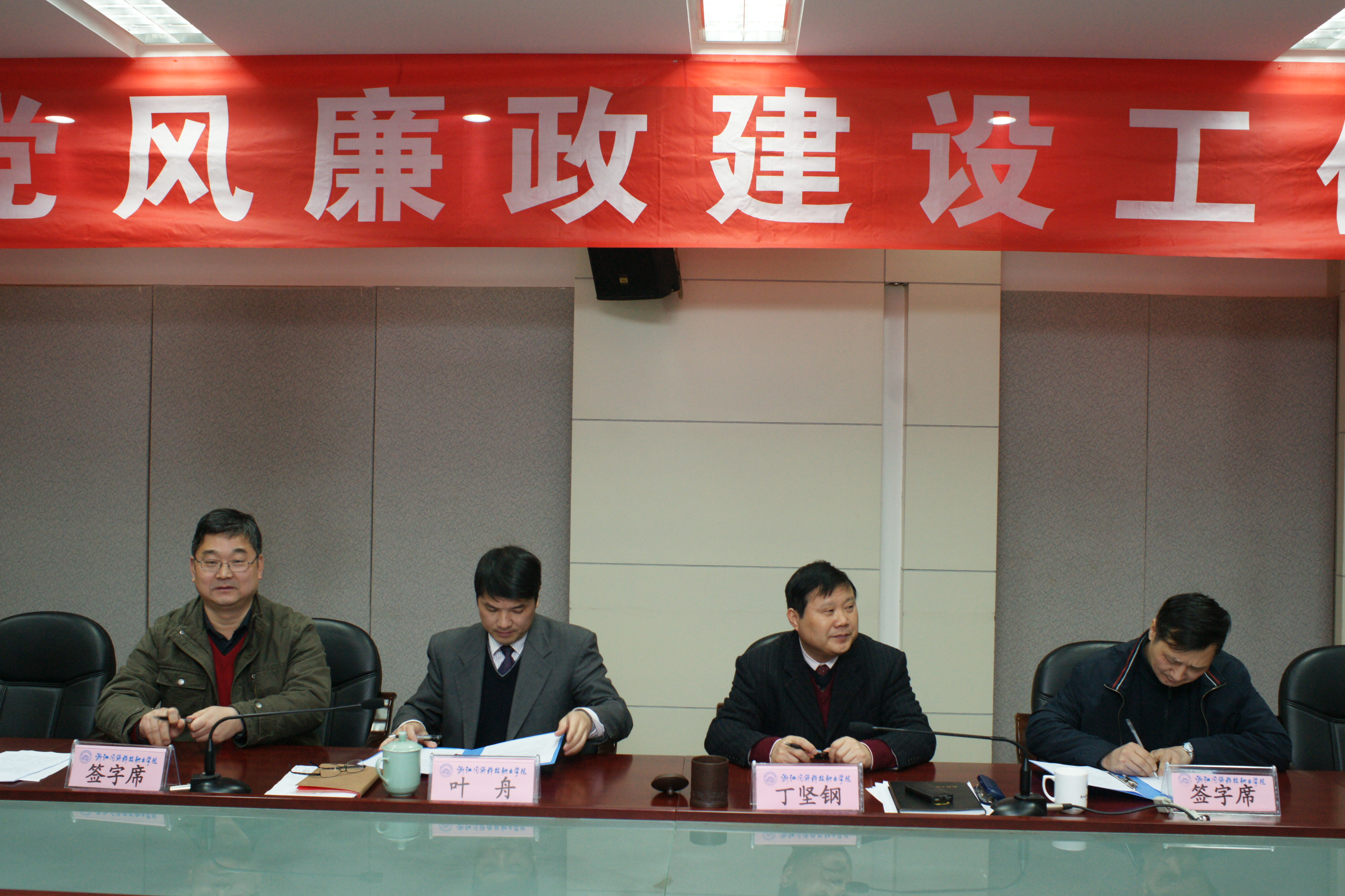 监察室、总务基建处、科研设备处、财务审计处、建筑系和大禹公司分别就2011年执行采购制度检查,基建工程招投标、科研经费使用管理、“小金库”专项治理、系部党风廉政建设和公司制度建设和规范化管理等工作进行了专题交流。 机电系和艺术系作为部门代表与学院签订了《党风廉政建设责任书》。