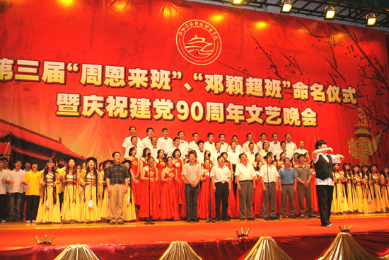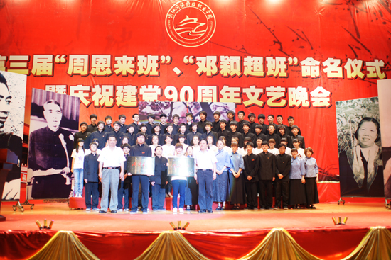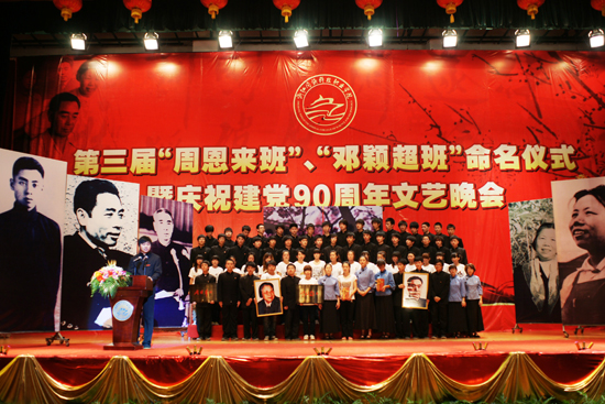 在命名仪式上,院长叶舟宣读了《关于命名第三届“周恩来班”、“邓颖超班”的决定》。与会嘉宾和领导为获得为第三届“周恩来班”—— 水利水电建筑工程09-02班、“邓颖超班”—— 装饰艺术设计10-02班授牌、授像,赠纪念章,并为建筑设计技术10-02班、数控技术10-02班以及建筑经济管理10-02班颁发了创建奖。随后,第三届“周邓班”的全体成员在水利水电建筑工程09-02班柳晓敏同学带领下发出了 “牢记先辈教诲,本本分分做人,秉承伟人精神,共创和谐班级”的庄严宣誓。