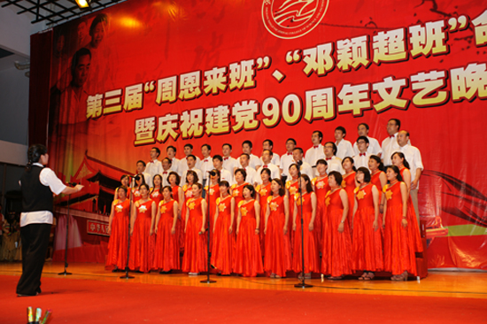 晚会上,《共青团之歌》和《保卫黄河》让人心潮澎湃,一曲曲耳熟能详的红色经典歌曲《太湖美》、《走进新时代》、《没有共产党就没有新中国》让台下的观众也禁不住一起和着节拍、轻声歌唱,在悠扬的歌声中一起回顾那难忘的峥嵘岁月,歌颂着党的恩德。舞蹈《南湖的船 党的摇篮》再现了90年前南湖红船上共产党诞生的情景,《康定溜溜的情》折射出了各族人民对共产党的拥戴,诗朗诵《乐章》、《党旗飘飘》道出了“没有共产党就没有新中国”的心声。由教工合唱团带来的大合唱《我的祖国》将晚会推向高潮,激昂的歌声使得全场观众热情涌动,全体起立,高声合唱着《歌唱祖国》,为晚会划上了以个圆满的句号。歌声缓缓回荡在礼堂的上空,久久未曾散去。