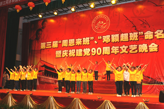 歌声如潮,掌声雷动,整个文体中心成为一片红色的欢乐海洋。6月28日的晚上,全院师生共聚此处,一起为中国共产党成立九十周年倾情演出,以红歌演唱、诗歌朗诵、舞蹈、情景剧等丰富多彩的表演形式,生动再现了伟大共产党90年的光辉历程,热情歌颂了党的丰功伟绩。晚会同时还举行了学院第三届“周恩来班”、“邓颖超班”命名仪式。省水利厅党组成员、纪检组组长劳功权、厅工会主任陈永根应邀出席晚会。院领导丁坚钢、叶舟、郑贞宝、吴宏平、郭雪莽、刘志华与全院师生一起观看了晚会。