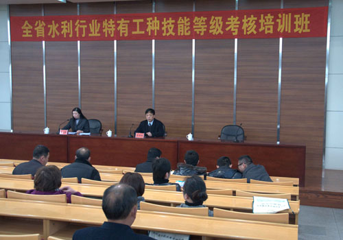 省水利水电干部学校副校长、水利行业特有工种技能鉴定站站长金连根出席并讲话。他就今年我省水利行业特有工种职业资格考评工作的开展情况作简要介绍,并指出持证上岗在今后事业单位机构设置定员定岗中的重要性。希望大家认真对待学习,按时到课,顺利通过考试。