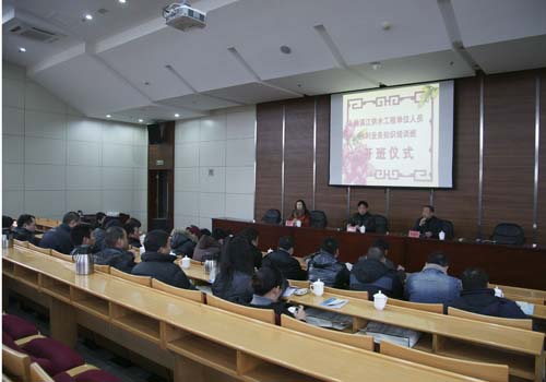 永嘉县楠溪江供水工程单位人员水利业务知识培训班于1月9日上午在我校举行,干校副校长金连根、永嘉县水务集团有限公司王建新董事长出席开班仪式。共有28人参加此次为期一周的培训。