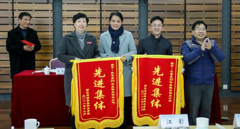 招就处处长金永琪汇报了学院2018年度招生、就业创业工作情况和工作亮点,仔细分析浙江省评估院对学院2017届、2015届毕业生质量跟踪调查的各项反馈数据,并提出2019年度工作设想。机电系书记蒋晓冬分享了就业创业工作过程中积累的宝贵经验和优秀做法。