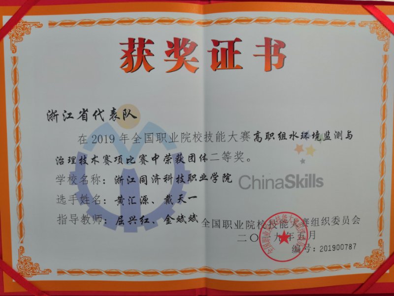 5月9日至10日,2019年全国职业院校技能大赛“水环境监测与治理技术”赛事在天津现代职业技术学院举行。我院学子作为浙江省选拔组建的4支代表队之一,经过与全国79支参赛队伍的激烈角逐,勇夺团体二等奖的好成绩。