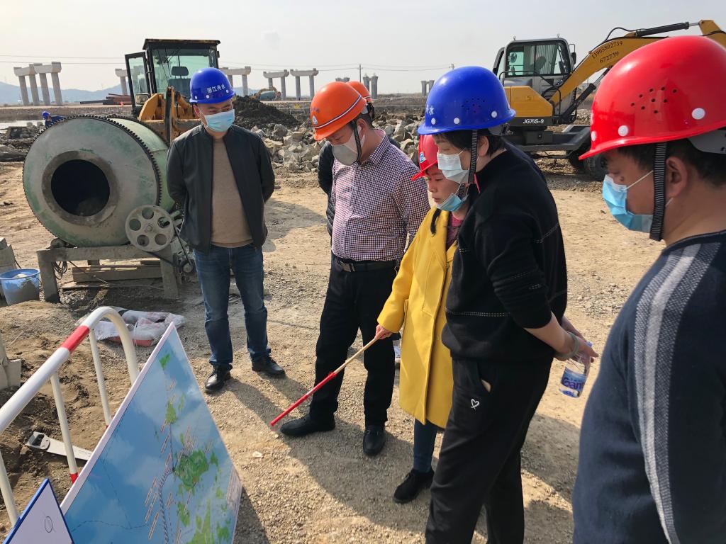 江影一行在定海强排工程——西大塘配套二期工程现场督查