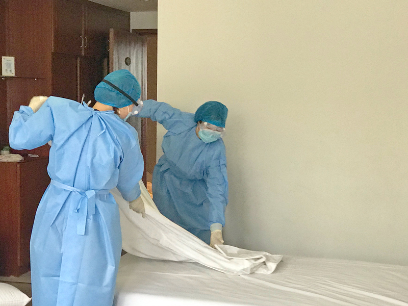 疫情防控,没有旁观者,只有参与者。继续教育学院宾馆承担着隔离点的消毒、卫生保洁等服务保障工作。从复学第一天开始,陆续有个别学生发烧,经医院检查后送往学院宾馆指定隔离点进行隔离。