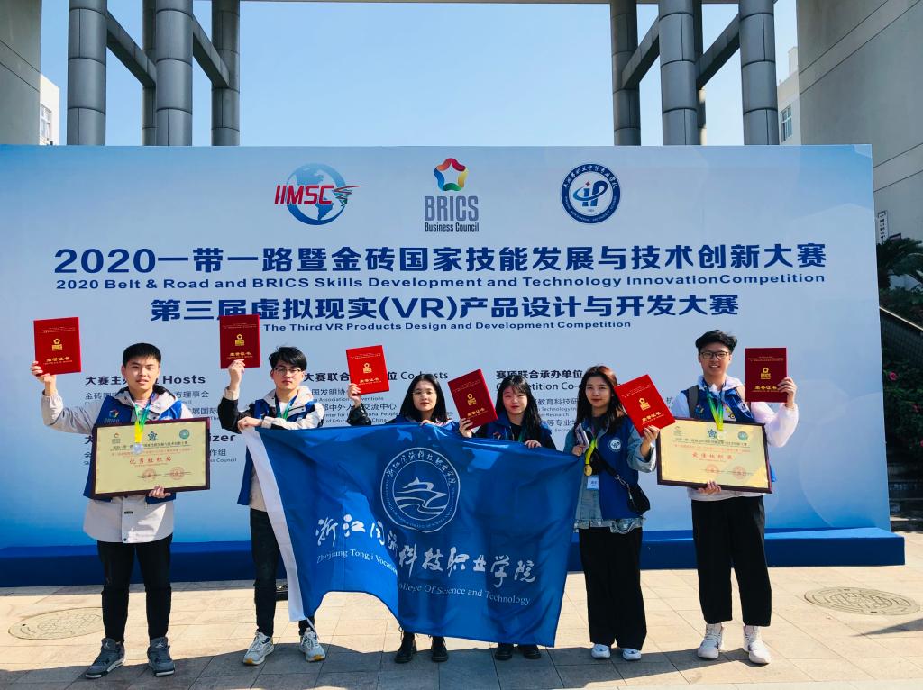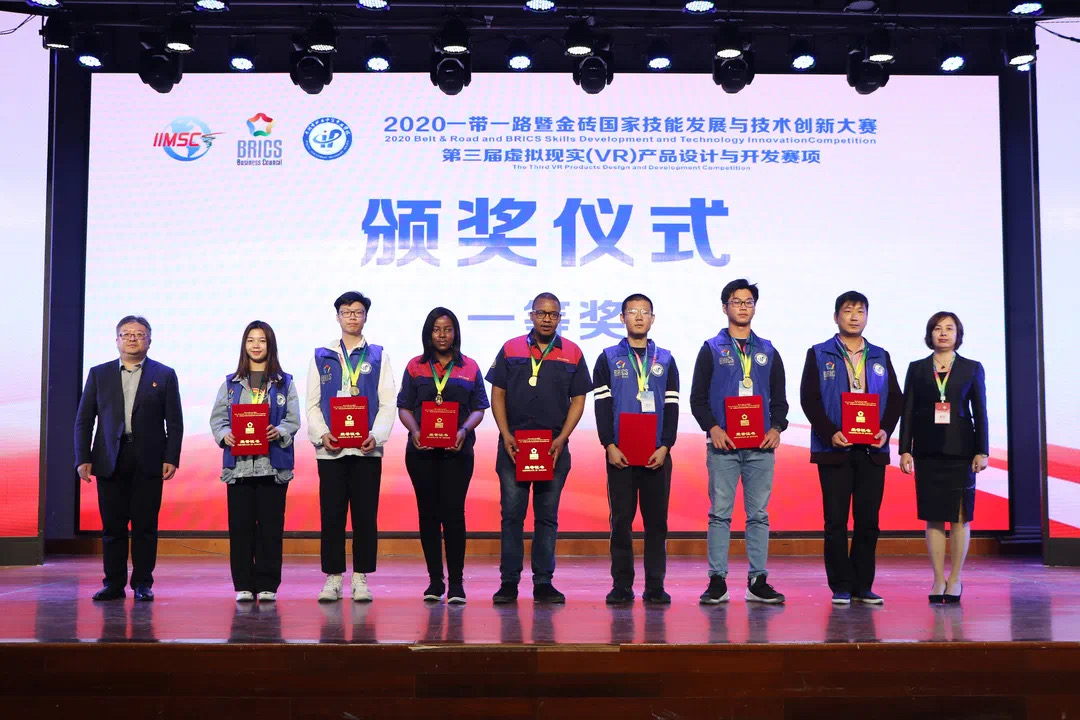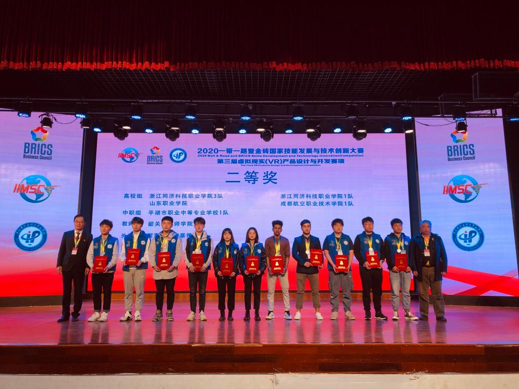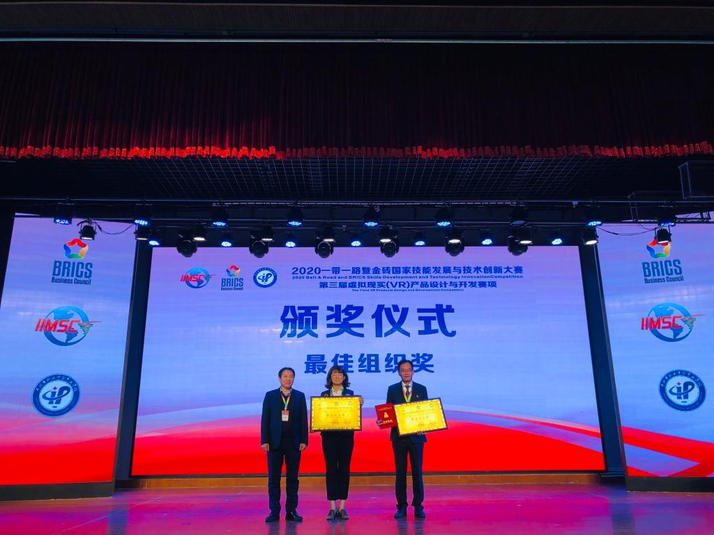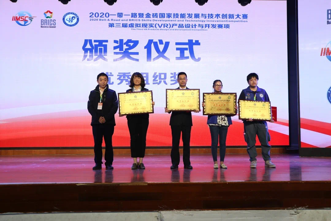 10月27日至10月30日,2020年“一带一路”暨金砖国家技能发展与技术创新大赛之第三届虚拟现实(VR)产品设计与开发大赛在浙江平湖市举行。来自全国的29支代表队、58名中国选手和来自南非、津巴布韦、佛得角、阿富汗、埃塞俄比亚等国的8名外籍选手相互角逐,同台竞技。历经三天的激烈角逐,我院水利工程系选派的三支代表队获得团队一等奖1项、团队二等奖2项的骄人战绩,学院获得最佳组织奖和优秀组织奖,三位指导教师李振宇、张晨辰、程静获得优秀指导老师荣誉称号。获得一等奖的大禹2018班学生易永发、梁沁尧团队还将于2021年跟随金砖国家工商理事会中方技能组征战国外赛区。