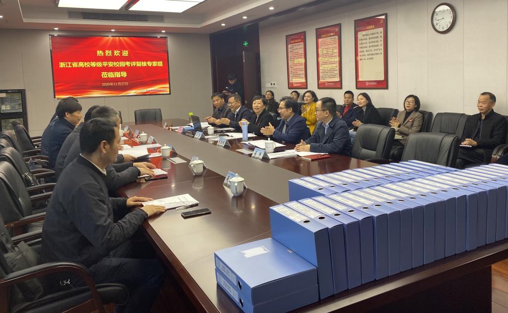 11月27日上午,省高校“等级平安校园”专家组一行7人来我校开展“等级平安校园”复核考评。学院党委书记江影,院长梁国钱,党委委员、副院长沈自力、姜伟、朱兆平,党委委员、组织部部长吴玲洪及各党政职能部门负责人参加了考评汇报会、反馈会。会议由复核专家组组长,杭州电子科技大学党委委员、副校长吕金海主持。
