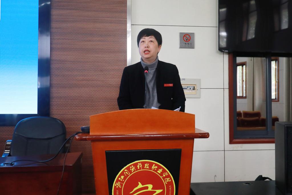 党委书记江影讲话。江书记充分肯定过去一年全校上下在应对疫情、教育教学改革、高职扩招、师资培养、文明校园申评等方面取得的重要成绩,指出要用系统观念、系统方法分析高职教育新形势,努力抓住发展机遇。她强调要全力以赴做好2021年各项工作,重点抓好党史学习教育、数字化改革、“双高”建设等重点工作,坚决完成事关学院改革发展的关键工作,保底线、攻难点、强突破。在此过程中,更加要求党员干部、全体教职工履职尽责,发挥忠诚干净担当的优良作风,干实事求实效,发扬“三牛”精神,争做头牛向前“犇”,谱写2021年同科美好华章,向中国共产党成立100周年献礼。