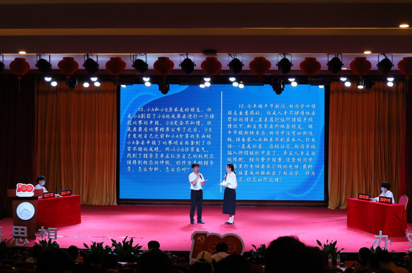 为深入贯彻落实全国、全省高校思想政治工作会议精神和《普通高等学校辅导员队伍建设规定》,进一步推动我校辅导员队伍专业化、职业化建设,提高辅导员队伍的整体素质和能力,在完成基础知识测试、谈心谈话两个环节比赛的基础上,7月6日,我校第五届辅导员素质能力大赛“案例研讨”环节在水韵剧场顺利举行。校长梁国钱、副校长沈自力以及校党委委员、宣传统战部部长吴敏启出席观摩比赛情况。至此,校第五届辅导员素质能力大赛所有赛程全部顺利完成。