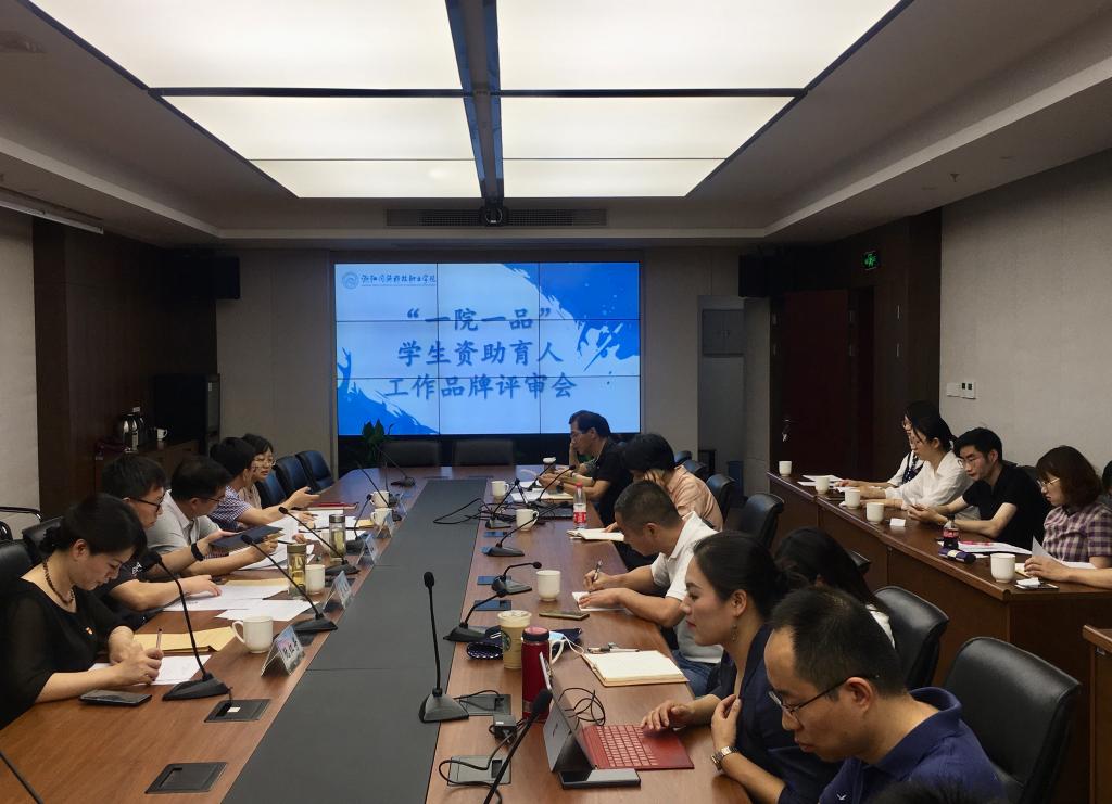 学校“一院一品”学生资助育人工作品牌评审会于7月9日在行政楼二楼会议室顺利举行。学校党委委员、宣传统战部部长吴敏启,学工部部长周恺,科研处处长高永胜,组织部副部长金璐,马院副院长阮红芳担任评委。相关职能部门、各二级学院党总支、全体辅导员参会。会议由学工部副部长陈君主持。