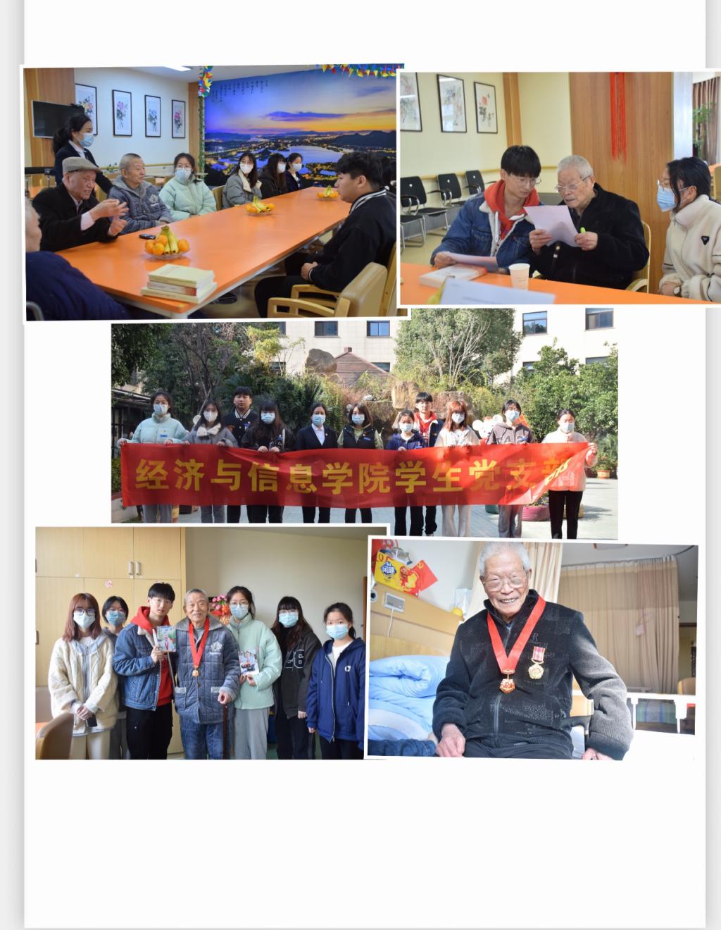 为进一步开展党史学习教育,贯彻十九届六中全会的精神,回顾党的光辉历程,发扬红色传统,传承红色基因,11月26日,经信学院学生党支部赴萧山区开元乐都养老院开展“对话革命先辈 让红色火种代代相传”主题党日,慰问革命老兵,寻访红色印记,再现峥嵘岁月。支部学生党员和部分入党积极分子代表参加。