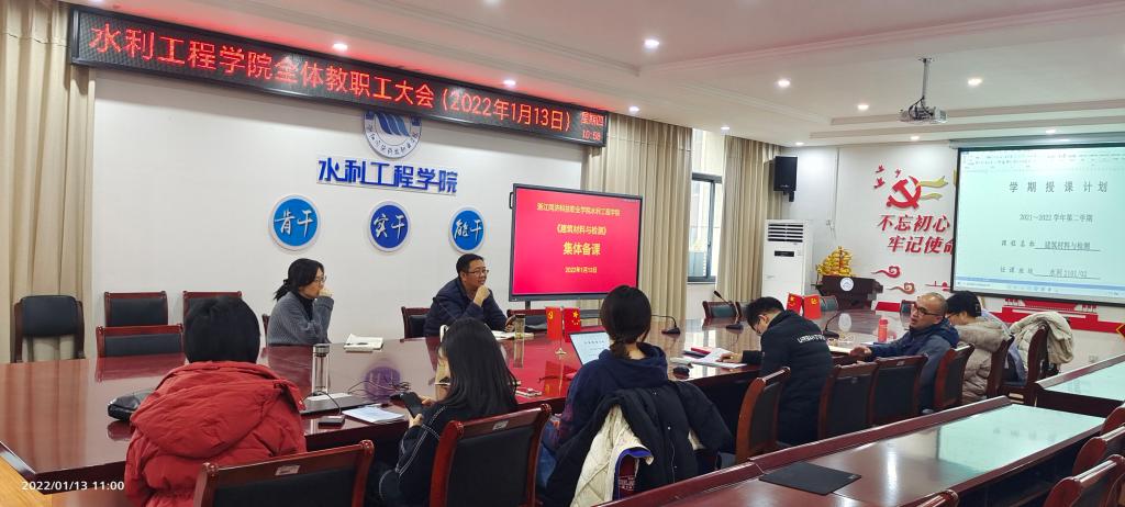 为进一步提升教学质量,深化“三教改革”,水利工程学院在2022年1月12至13日,组织开展了集体备课活动。重点对《工程力学与结构》《建筑材料与检测》《水利工程测量》《水文与水力计算》《工厂化育苗》等课程进行教学理念、教学策略等共性问题探讨与交流。学院院长刘进宝、副院长金斌斌,相关专业部主任、课程任课教师参与备课活动,部分课程还邀请企业专家共同参与备课。