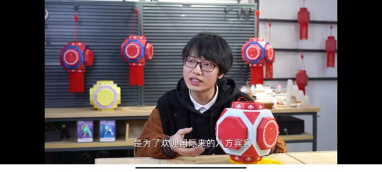 “骨”往今来小分队将亚运元素放进龙凤八卦灯中,灯身四个面分别放有杭州亚运会、亚残运会吉祥物和良渚文化等元素,寓意着国泰民安的美好祝愿,为杭州亚运会、亚残运会加油。