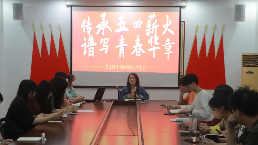 在五四青年节即将到来之际,习近平总书记来到中国人民大学考察调研并深情寄语广大青年,“在青春的跑道上奋力奔跑,争取跑出当代青年的最好成绩!”总书记的话字字千钧,鼓舞人心,在艺术设计学院学子中引起了热烈反响。为宣扬“五四”精神,深入学习领会习近平总书记的重要讲话精神,激励广大团员青年自觉担负起时代赋予的光荣使命,2022年5月5日下午,在团总支书记宋利老师的带领下,团总支学生会于B506召开了第五次团学例会,本次例会的主题是“传承五四薪火,谱写青春华章”。
