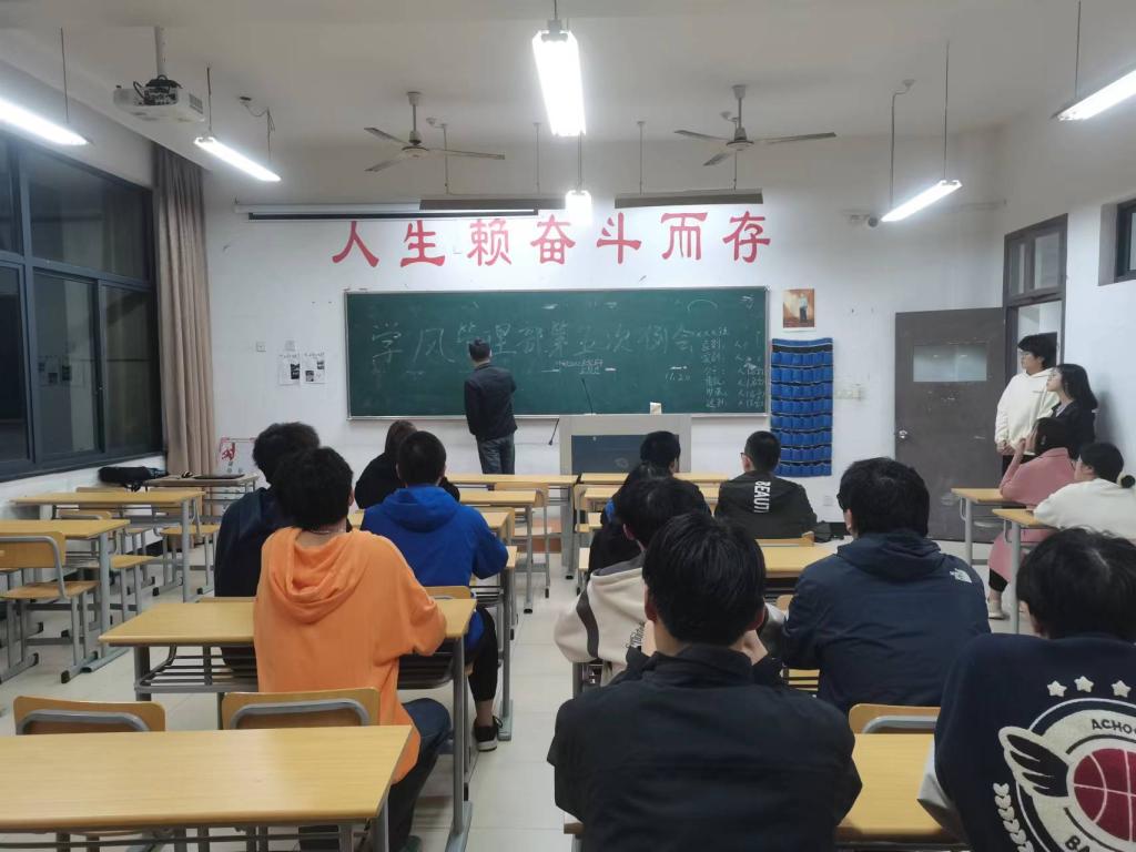 会上,学风管理部门对接下来的晚自习检查、带早饭进课堂、卫生间抽烟等相关学生行为规范,安排了相应的巡查抽检任务,并明确要落实每次检查任务,执行学校的检查政策,按照学校以及各级学院要求,规范检查,确保检查任务能够正确、规范、合理得到执行。辅导员俞暾老师要求部门成员要以端正的态度,饱满的精神和务实的作风,积极参与本次工作,服从部门安排,认真检查,落实每一处细节。