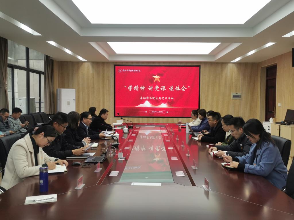 11月30日,基础教学部、马克思主义学院直属党支部组织开展“学精神、讲党课、谈体会”主题党日活动,通过个人自学、专题党课、交流体会等形式全面准确学习领会党的二十大精神。基础部、马院直属党支部副书记张春平主持会议,校长梁国钱,校党委委员、宣传统战部部长吴敏启,基础部、马院领导班子进行党的二十大精神专题党课讲解,全体党员参加活动。