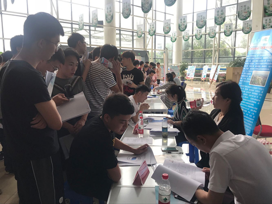 各应邀企业负责人就来到了招聘现场,在报到处签到领取了2019届毕业生情况介绍宣传册后,就来到各自的展位布置招聘展台。2019届毕业生全体学生,也带着准备好的简历,陆续来到招聘现场,认真查看各企业的招聘简章、询问招聘需求,选择自己心仪的企业。水利工程系各专业负责人、各班班主任,也在现场为同学们的求职应聘指导应聘。