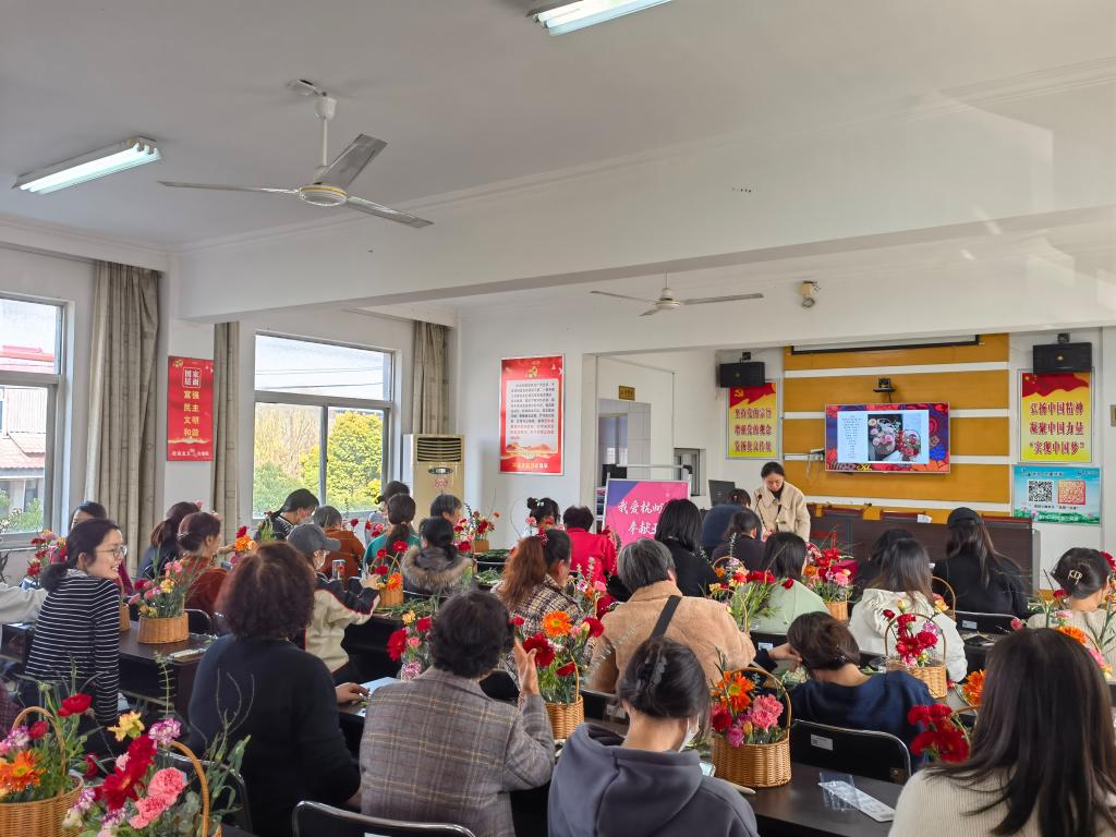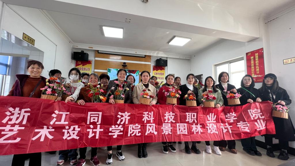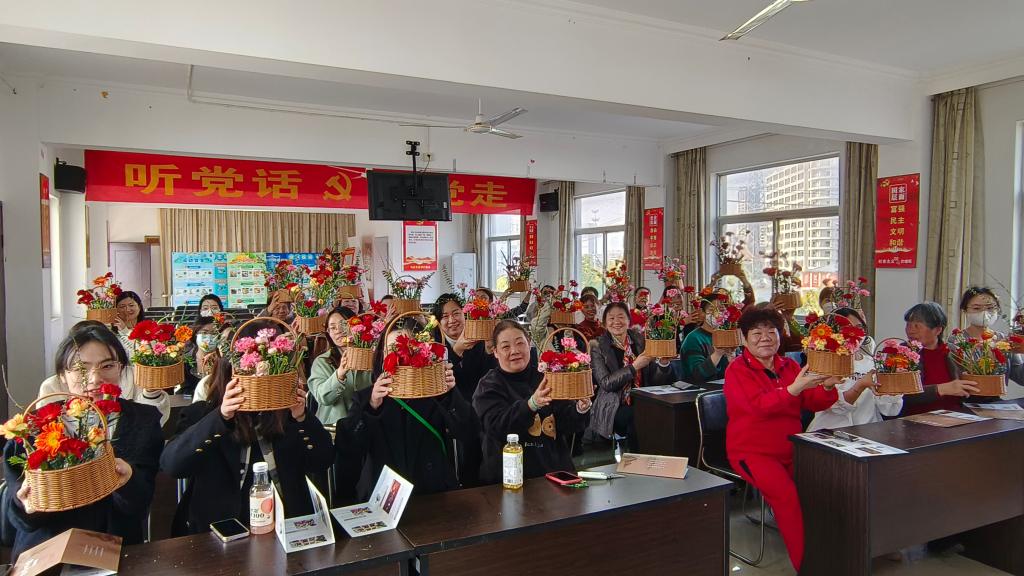 在三八国际劳动妇女节来临之际,艺术设计学院为共建单位钱江社区带来了春日温暖,2023年3月6日,风景园林党支部发挥专业特长,赴钱江社区为居民讲授一节花艺课,共同学习弘扬移风易俗新风尚。