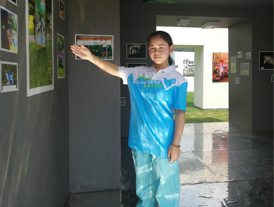 我院志愿者用微笑带来了凉意,驱散了阴云,用耐心服务了前来参观的游客,用热情让国内外朋友对我校志愿者竖起来大拇指。