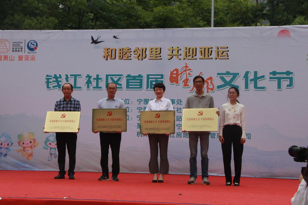 5月14日,钱江社区开展主题为“和睦邻里 共迎亚运”首届睦邻文化节,艺术设计学院党总支作为社区党建共建单位,应邀参加此次文化节,学院党总支副书记、副院长陆叶代表党总支参与授牌仪式,学院组织员、学生党支部书记王婷代表学院志愿服务队参与授旗仪式。文化节开幕式上,艺术设计学院学生代表奚玫莹、张盛泽、鄢石山、周新翔、赵文杰合唱《无名的人》,为社区文化节带去了年轻的力量。
