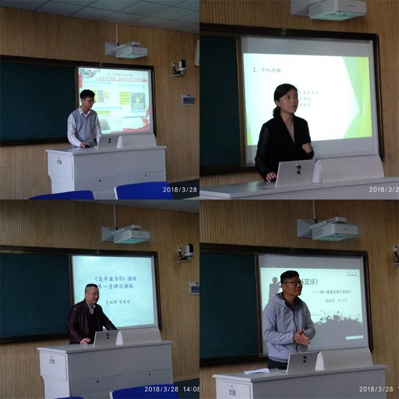 良好的开端是成功的一半,“第一堂课”的教学对学生后续学习至关重要。如何针对各课程的学习特点,结合学生学情设计和实施好第一堂课的教学对所有教师来说都是一项重要任务。在前期各教研室说课评比的基础上,基础部推荐了曹明、缪莉、朱孝春、宋卫军四位教师进行“第一堂课”说课展示。课程包含了《概论》、《大学英语》、《高等数学》、《篮球》。每位教师就自己 “第一堂课” 独特的教学过程作了充分展示。