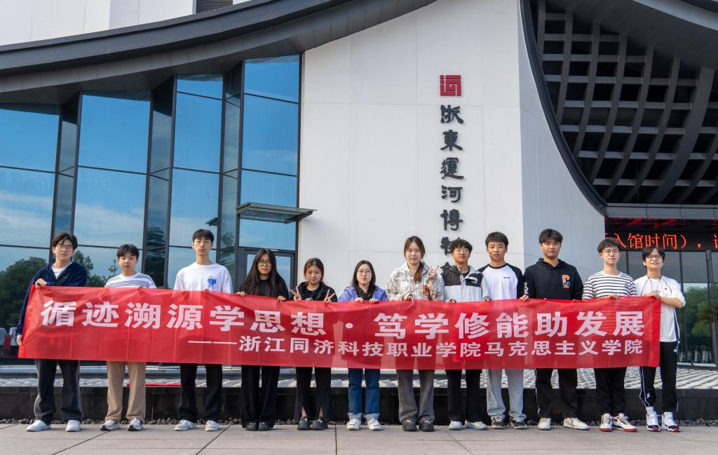 为持续深入学习贯彻习近平总书记在浙江考察时的重要讲话精神,扎实推进习近平新时代中国特色社会主义思想入脑入心,11月3日-4日,马克思主义学院习近平新时代中国特色社会主义思想概论教研室教师曹明、方灵丹和余国奎带领学生赶赴绍兴浙东运河文化园等地,开展“寻迹溯源学思想·笃学修能助发展”主题实践教学活动。引领莘莘学子近距离感受浙东古运河的历史文化传承,进一步促进同学们对习近平总书记在浙江考察时的重要讲话精神的理解,巩固思政课程的教学成效。