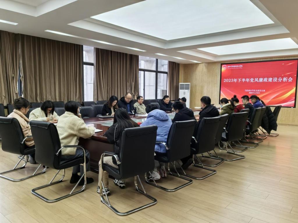 1月3日下午,马院通识学院直属党支部在A517召开2023年下半年党风廉政建设分析会。学校党委委员、副校长吴敏启出席会议。学校纪委委员、经信学院党总支副书记,马院、通识学院班子成员,各教研室主任及综合行政管理人员参加会议。会议由马院、通识学院直属党支部副书记主持。