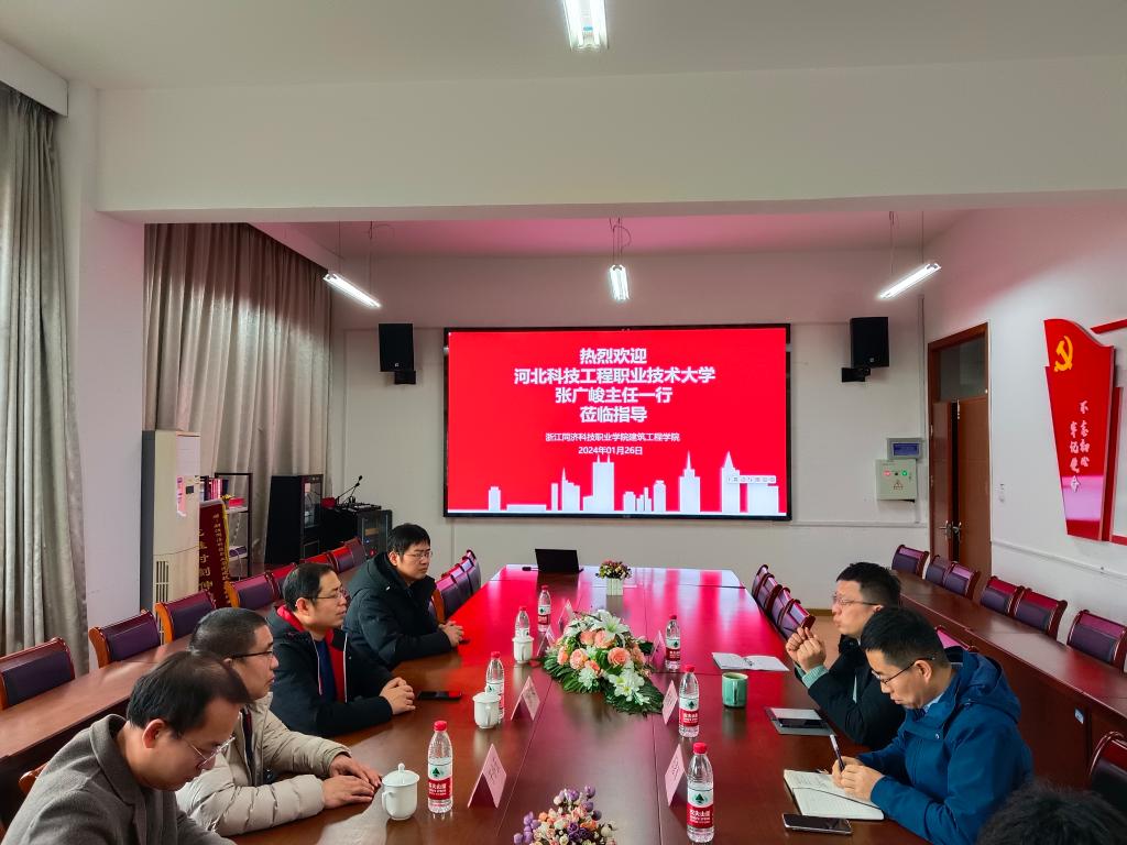 2024年1月26日下午,河北科技工程职业技术大学建工系主任张广峻、副主任崔立杰、纪检委员于小五、建筑设计教研室主任杨文军等一行4人来到学校建筑工程学院进行访问交流。建筑工程学院院长杨海平、学院党总支副书记石彦军及教师代表等予以热情接待。