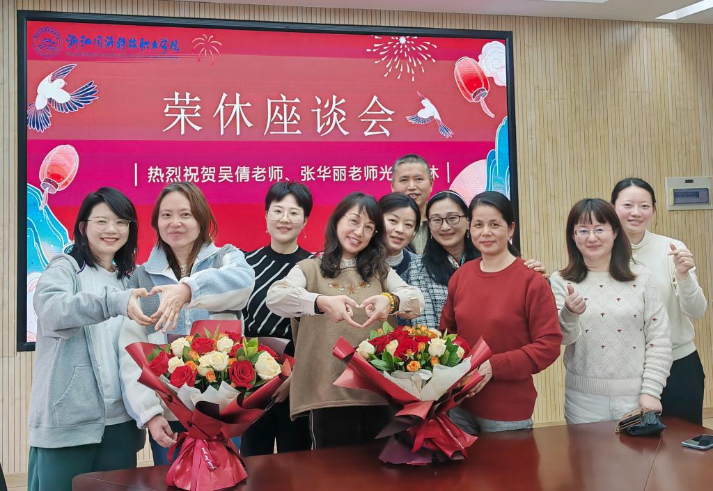 3月27日下午,马克思主义学院、通识教育学院在A517会议室举行了吴倩老师、张华丽老师荣休座谈会,学院班子领导、英语教研室全体老师等20余人参加。荣休仪式由阮红芳院长主持。