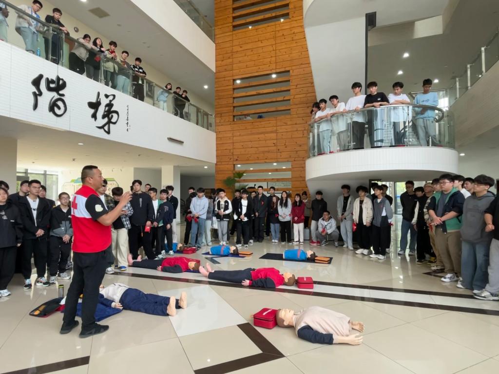 为助力平安校园建设,普及应急救护知识,进一步提高师生应急救护能力,2024年4月10日,机电工程学院学生党支部联合萧山宁围街道红十字会在图书馆一楼大厅为师生开展“用心守护‘救’在身边”应急救护员培训。此次培训采用线上理论教学与线下实操教学相结合的方式进行。