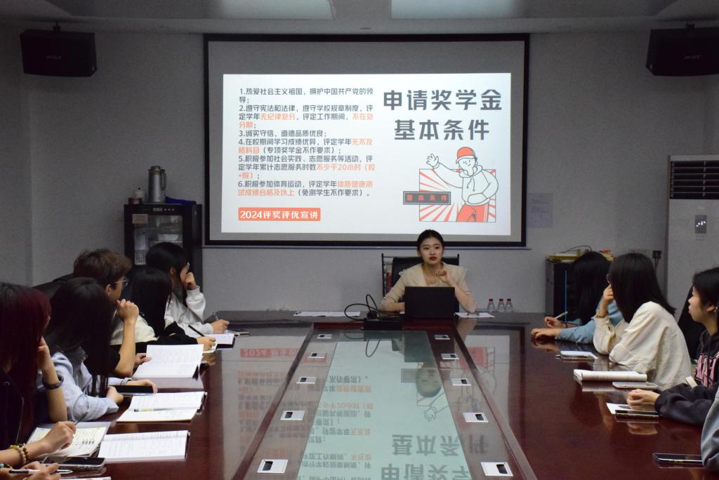 为加强经济与信息学院的学风建设,发挥评奖评优政策导向、激励作用,调动学院各班级学习和竞赛积极性,学院于2024年4月25日召开评奖评优政策宣讲会。此次会议由辅导员黄贝迪老师主持,经信学院学生干部及22、23级班长参加。
