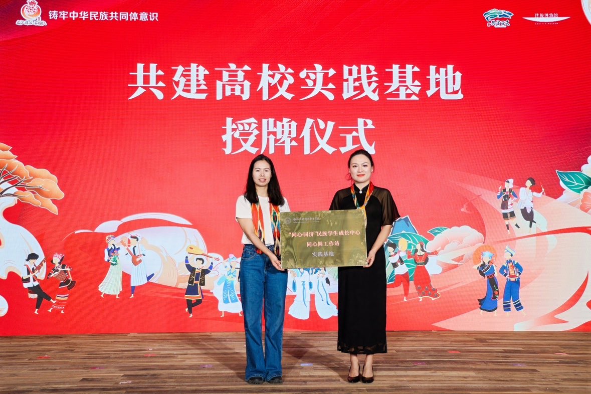 在揭牌仪式上,机电学院党总支书记章卉上台为“同心·同济”民族学生成长中心同心圆工作站共建基地进行揭牌,同时也接收了杭州市民宗局向参与“之江同心·石榴红”党建联建的单位赠送的《中华民族共同体概论》教材,为进一步开展民族生实践活动打下基础。