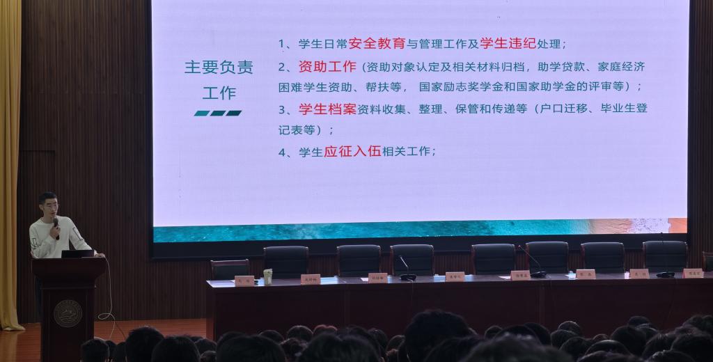 为进一步坚定大学生理想信念,帮助新生适应大学生活,10月16日下午,机电工程学院在瓯江楼报告厅举办了“辅导员说”活动。学院党总支副书记徐菁晶、全体辅导员、组织员、2024级班主任和2024级全体同学参与了此次会议。