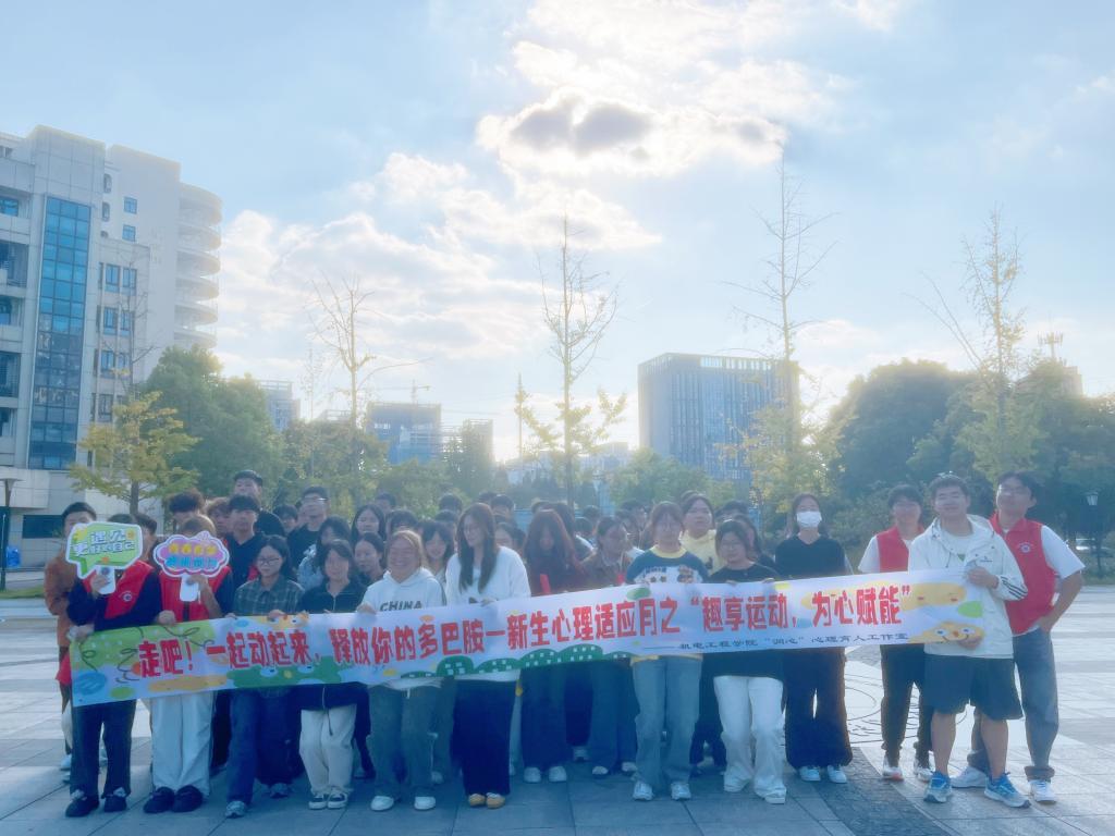 心健同行,以体强心。为激发同学们的活力,增进新同学间的友谊与团队协作精神,近日,机电工程学院栖风心理站在水韵广场举办了心理适应月“趣享运动,为心赋能”活动,同学们以团队形式参与,在运动中释放自己的活力。本次活动共计吸引了全校近三百名同学参加。