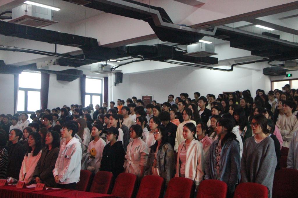 在庄严的国歌声中,本次活动正式拉开序幕。学院领导和在场师生们全体起立,共同奏唱国歌。歌声落幕后,众人向周恩来和邓颖超的肖像深深鞠躬,以表达对这两位杰出人物的敬仰和缅怀之情。