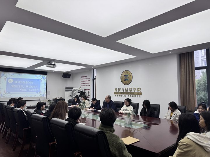 为增进师生交流、深入了解学生在学习和生活过程中遇到的问题,不断优化教学与管理,经济与信息学院于11月27日下午召开“畅谈心声,共话成长”系列活动第五期——“院长、书记有约”师生座谈会。经信学院院长景秀眉、党总支书记王志远、辅导员黄贝迪以及来自不同专业、年级的20名学生代表参会,会议由经信学院党总支书记王志远主持。