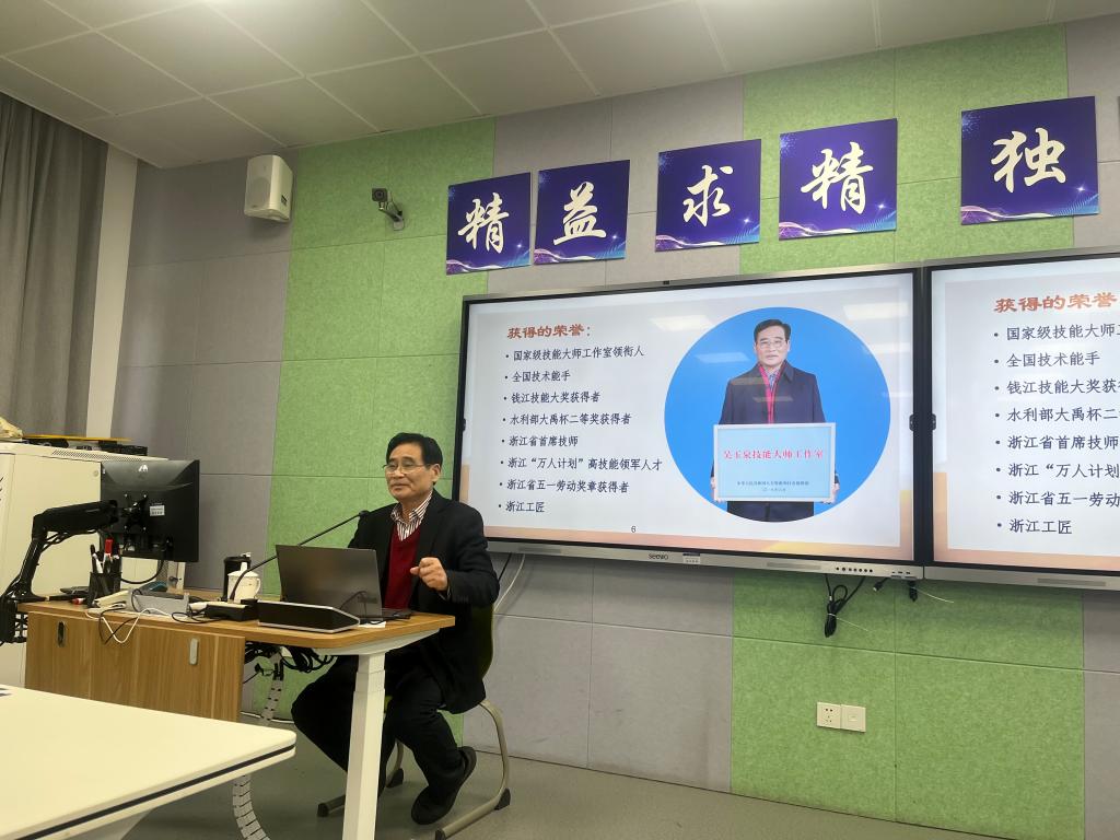 本次讲座特邀了“国家级技能大师”“全国技术能手”“浙江省万人计划高技能领军人才”“浙江省五一劳动奖章”“浙江省首席技师”“浙江工匠”“杭州市劳动模范”吴玉泉大师来校,与学院师生现场交流。本次讲座由电力专业部主任智新振老师主持,电力专业部老师王杨、电力2401班全体同学一同参加。