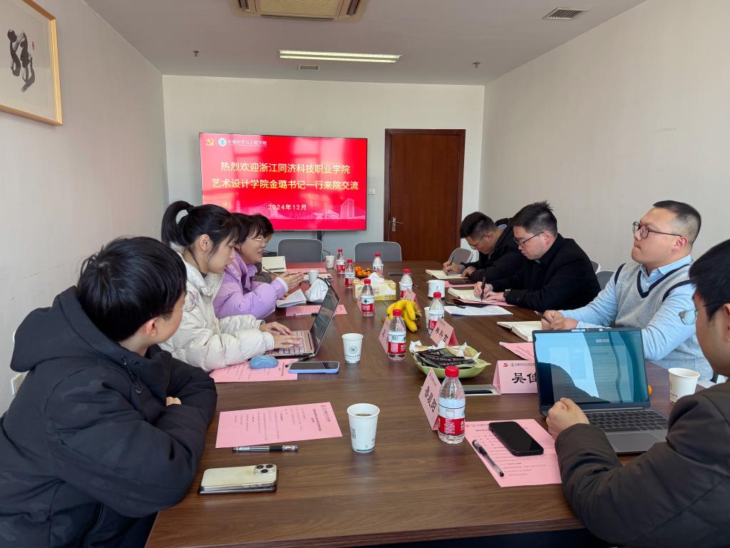 首先,举行党建共建签约仪式,艺术设计学院党总支与浙江水利水电学院环境科学与工程学院党总支,以及环境艺术设计党支部与浙江水利水电学院环境科学与工程学院环境教工党支部分别签订了党建共建协议书。随后,双方围绕基层党组织建设、党建“双创”项目建设、文化研究与水文化研究以及辅导员队伍建设等议题展开了深入探讨。金璐代表艺术设计学院党总支介绍了学院党建工作情况,尤其是近年来取得的荣誉,以及学院党员师生在服务乡村振兴战略做出的积极努力。汪一丁代表环境科学与工程学院党总支向金璐书记一行表示欢迎,他介绍了学院的情况,分享了党总支的党建品牌建设的思路,以及在党的建设、思想政治教育等方面的经验。徐玉凤介绍了在抓学生工作方面的做法,并提出了工作中的困惑与想法。林科吉分享了学生工作和品牌建设方面的经验。最后,双方还就共同开展党建研究、开展主题党日活动等事宜进行了深入交流,并达成了初步合作意向。与会人员表示,此次交流不仅增进了两个二级学院之间的友谊和了解,也为今后的合作奠定了坚实基础。