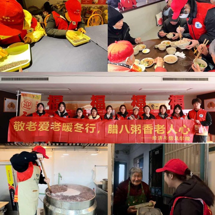 为传承中华优秀传统文化,弘扬孝老敬老风尚,营造祥和温馨的节日氛围,1月03日上午,经信学院团总支前往雨花·吴山敬老家园开展“敬老爱老暖冬行,腊八粥香老人心”活动,为部分独居老人送上传统节日的祝福,传递冬日温暖。