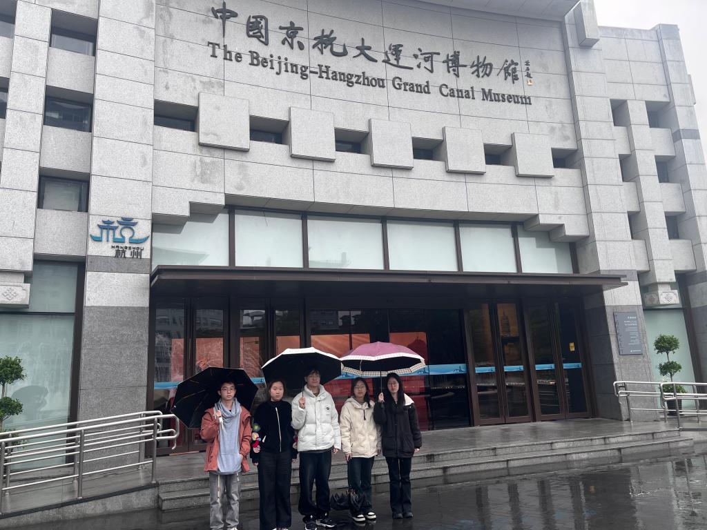 寻觅团首站抵达“浙东唐诗之路”核心地带天台,成员们循着李白《求崔山人百丈崖瀑布图》的诗韵,在石梁飞瀑前驻足凝望。飞瀑如银龙腾空,声震山谷,大家在实地测绘古水利工程遗迹,在青山碧水间感悟古人“天人合一”的治水理念。转战海宁,水利文化园通过全息投影重现清代鱼鳞石塘修筑场景。盐官海塘蜿蜒如巨龙横卧江畔,队员轻抚苔痕斑驳的条石,惊叹于“水攻法”“种蛎固基”等古代工程智慧。潮乐之城内,大门口巨幅视频播放着一线潮如素练横江,轰鸣声中,成员们深刻体会“顺势而为”的治水哲学。最后一站杭州,京杭大运河博物馆的漕船模型、拱宸桥水文站的实时监测屏、水利科普馆的现代化泵站构成时空对话。队员们从隋朝砥柱工程到当代智慧水利的演变中,触摸到水利工程促进区域经济、维系生态平衡的文明脉络。在杭州市水利科普馆,气势恢宏的泵站设施震撼众人,通过实地参观与讲解,让大家明白了水利工程如何抵御洪水、改善水环境,保障城市安全。
